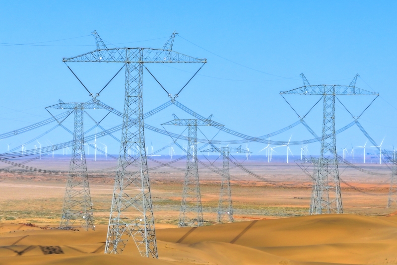 ±1100千伏吉泉直流、±800千伏祁韶直流、±800千伏天中直流特高压线路穿越巴丹吉林沙漠。