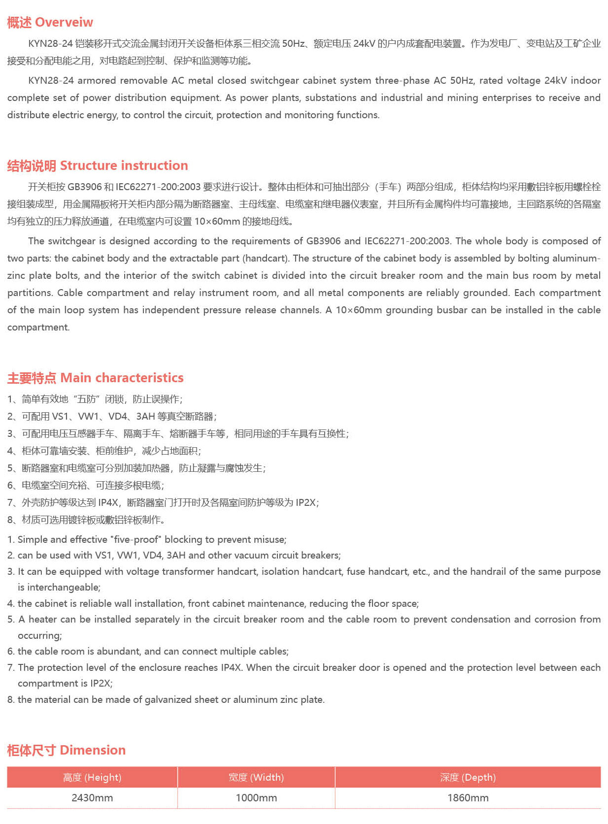 KYN28-24铠装移开式交流金属封闭开关设备柜体
