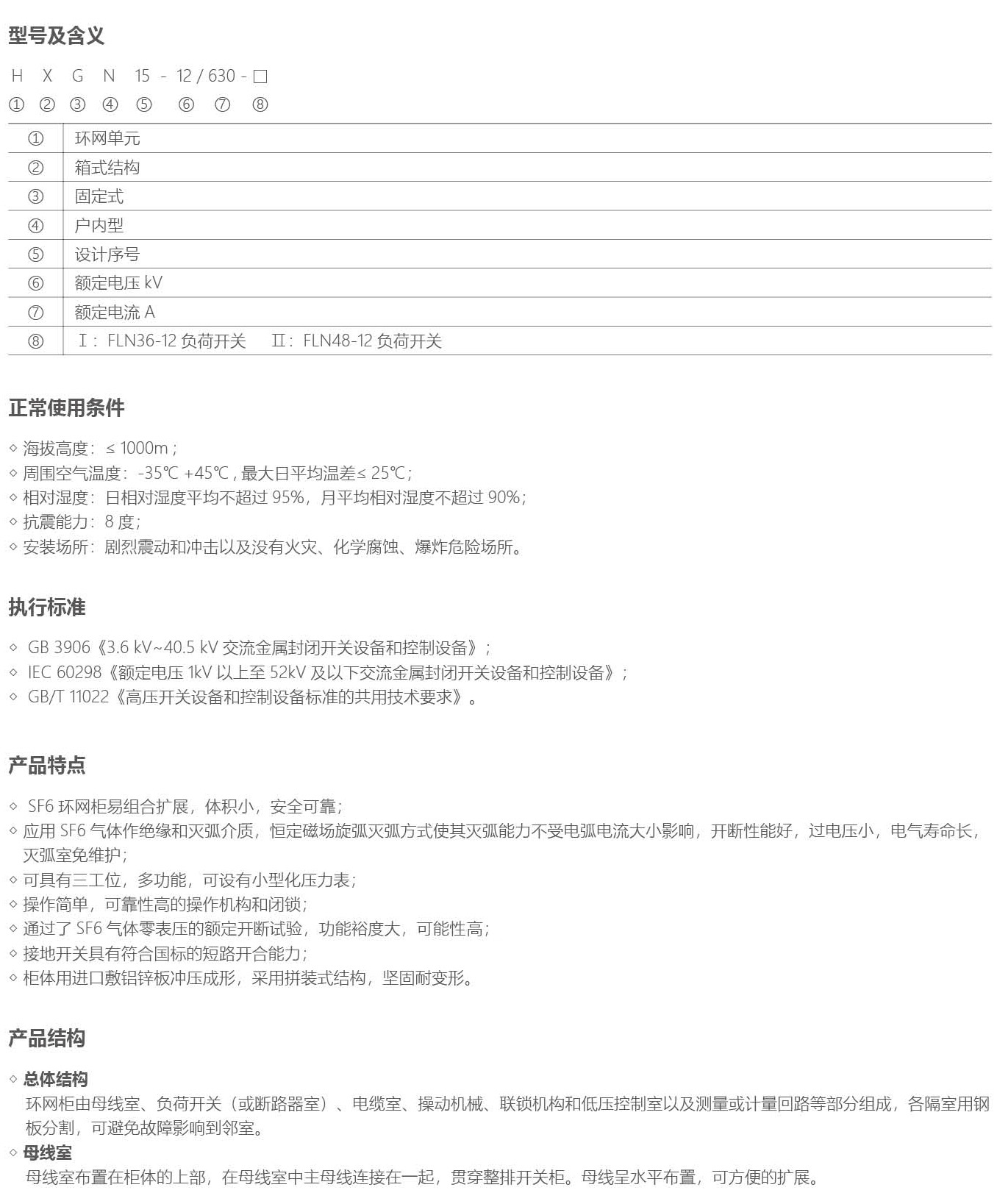 HXGN15-12 箱型固定式金属封闭环网开关设备 ( 简称环网柜 ) 适用于交流 50Hz,12kV 的电力系统。广泛用于工业及民用电缆环网及供电终端。