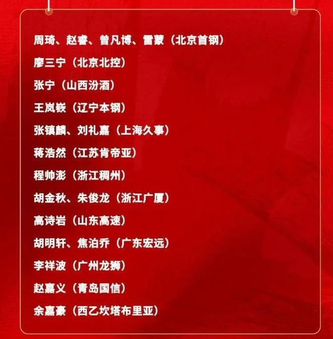 11月12日深夜,全运会男篮成年组的比赛刚一结束,中国篮协就官宣了最新一届中国男篮国家队集训队的名单。此次集训队的大名单中球员共有19人,其中北京首钢队有4人,广东宏远队、上海队和浙江广厦队各有2人,还有11日深夜已经飞往西班牙的余嘉豪;但是赵继伟因伤没能入选,在美国征战NBA联赛的杨瀚森和NCAA的王俊杰也不在大名单中。