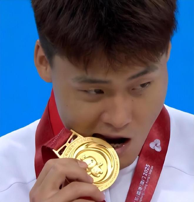 拿到金牌后赵睿还咬了一下这块金牌,赵睿在四年前曾咬过周琦的金牌。
