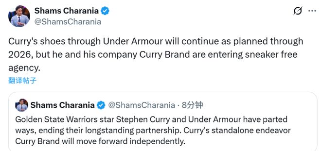 库里表态:“在我职业生涯初期,安德玛就选择相信我,还给予我足够空间,去打造出远比一双球鞋更宏大、更具影响力的事业。这份恩情,我将永远铭记。”“库里品牌所秉持的理念、我个人的坚守,以及我对这份使命的承诺,永远不会改变。”