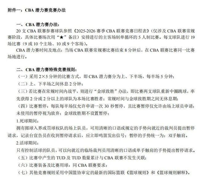 如再相同,则以“CBA潜力赛”中两队的积分排定名次,积分高者列前