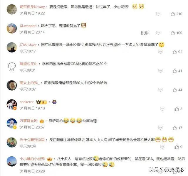 当时有不少球迷吐槽CBA再怎么水平不如NBA也不可能只有80人看,像知名度比较高的辽粤大战,京粤大战,乃至北京德比,浙江德比都是引爆关注的比赛。