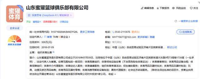 公开资料显示,山东蜜獾篮球俱乐部成立于2018年,总部位于济南,注册资本500万元,法人代表崔赛。该公司经营范围:体育竞赛组织、赛事策划、体育用品制造与销售等。