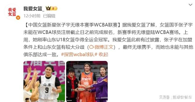 中国女篮这下彻底尴尬了。WCBA联赛新赛季彻底失去三大中锋了。根据知情人士透露,作为中国女篮最具潜力的新人张子宇,她新赛季将无缘征战WCBA联赛。要知道,李月汝、韩旭两人已经确定不再征战WCBA联赛,张子宇便成为了女篮联赛最强的大个子。可现如今,就连张子宇也无缘新赛季。这也就意味着,WCBA女篮联赛新赛季将彻底无缘三大中锋,其观赏性肯定是大打折扣。可对于中国女篮而言,却是一大利好。