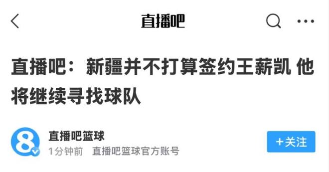 新疆男篮放弃签约王薪凯,是考虑了多个方面的因素。但对王薪凯来说,他没有能够在新疆男篮拿到一份合同,就只能去其他球队寻找机会了。不过由于之前在新疆男篮试训了接近两个月,各队基本上都已经确定了新赛季的阵容名单,而王薪凯又不是能力特别突出的球员。再加上新赛季的第一个球员转会窗口期很快就会开启,他基本上已经没有了去其他球队试训的时间,想要在这个窗口期里签约的难度非常大。在新赛季开打后,王薪凯想要拿到一份CBA合同的难度就更大了,新赛季有可能会无球可打。