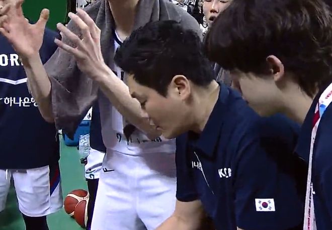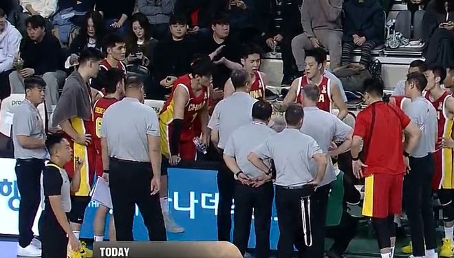 次节开场廖三宁没有上,中国队的进攻继续滞涩无比,韩国队已经拉开到17分了,郭士强再度叫暂停,从郭士强的表情、声音来看都知道他多么的不满意。暂停后李政炫再度命中三分,男篮的外线防守依旧稀烂无比,