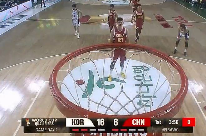 朱俊龙大声的为全队鼓励,李政炫超远三分再中,中国队已经落后达到20分,李元锡的三分都进了,韩国已经领先到22分,胡金秋被吹进攻犯规,韩国队终于吃了第三个失误,程帅澎还是三分打铁,张镇麟也被单打一个,程帅澎三分终于命中一个(12中1)。