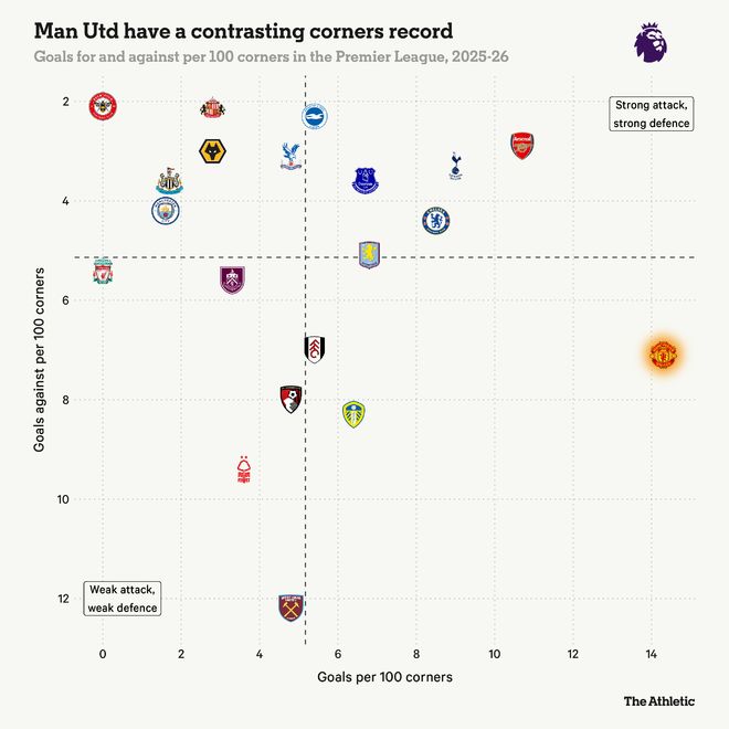本赛季,曼联在防守角球上依然存在问题,但在进攻角球方面,他们已成为英超最好的球队之一。