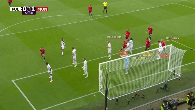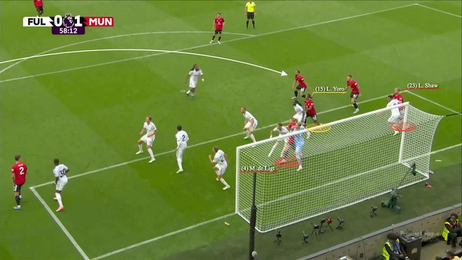 在八月份1-1战平富勒姆的比赛中,曼联的三中卫是约罗、德利赫特和卢克-肖,马特乌斯-库尼亚和谢什科则在后点完成包抄。