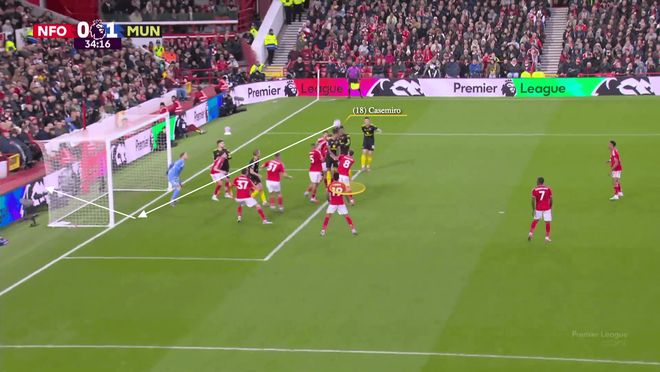 曼联为卡塞米罗创造的自由度和空间,使他能够接到布鲁诺-费尔南德斯开出的内旋传中,将比分改写为1-0。
