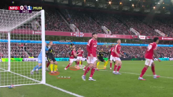 通过这种方式,曼联为德利赫特创造了空间,使他在后点无人盯防。