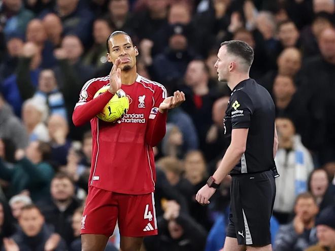 在那场比赛中,范戴克曾在上半场头球破门,将球顶过曼城门将多纳鲁马,但裁判随即判罚越位。VAR复核确认,利物浦左后卫安迪·罗伯逊处于越位位置,并认定其阻挡了门将视线,维持原判。