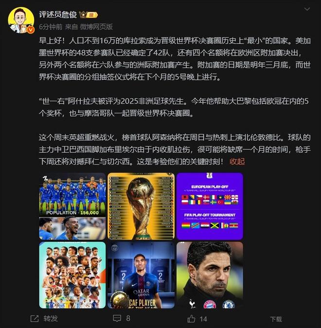 知名评述员詹俊在个人微博称:这个周末英超重燃战火,榜首球队阿森纳将在周日与热刺上演北伦敦德比。球队的主力中卫巴西国脚加布里埃尔由于内收肌拉伤,很可能将缺席一个月的时间,枪手下周还将对撼拜仁与切尔西。这是考验他们的关键时刻!