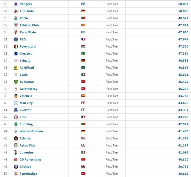 德转本赛季全球主场场均上座TOP25:多特拜仁前二,英博第18
